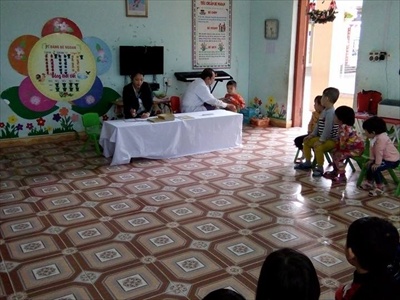 Trường mầm non Hưng Đạo tổ chức khám sức khỏe định kỳ lần 1 cho các bé năm học 2017-2018