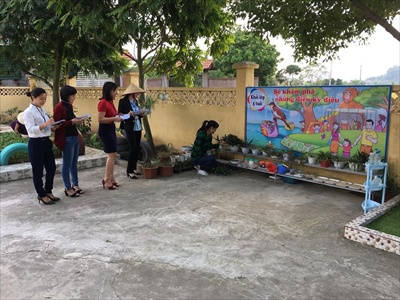 Xây dựng môi trường vật chất cho trẻ hoạt động ngoài trời trong trường mầm non Ngày 2-11, Trường mầm non Hưng Đạo tổ chức chấm điểm cuộc thi Xây dựng môi trường vật chất cho trẻ hoạt động ngoài trời trong trường mầm non năm học 2017-2018.